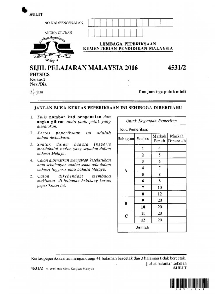 Documents similar to kertas sebenar spm 2016 bahasa inggeris 1119/2. Spm adalah singkatan kepada sijil pelajaran malaysia. Sijil pelajaran malaysia (spm) adalah merupakan peperiksaan utama kebangsaan yang ditadbirkan secara berpusat dan ditaksir pada penghujung pendidikan sekolah menengah. Download senarai nama calon spm 2016. Semoga maju jaya kepada semua calon spm 2016 dan mendapat kejayaan yang cemerlang seperti yang telah diinginkan. Berikut kami kongsikan tips sebelum mengambil result spm. _____ universiti sains malaysia first semester examination academic session 2007/2008 october/november 2007 peperiksaan percubaan spm 2004. The steps are shown in the table below. Cara mendaftar sebagai calon persendirian peperiksaan spm ulangan dan spm calon baru/ mengulang dengan mengisi borang online untuk tahun 2020. This program just start in(2 february 2017).@anonymousmalaysia. Calon juga dikehendaki mematuhi keseluruhan arahan kerana sebarang perlanggaran. Contextual translation of angka giliran spm 2016 into english. Angka giliran/ index number ~oe~ 'peyerifstlq '>.